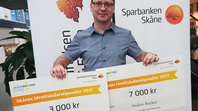 I går kväll var det stor idrottsgala i Lund och Anders Bucher och Skabersjö skytteförening fick ta emot stipendium! Stipendierna delas ut av Sparbanksstiftelserna i Skåne tillsammans med Skåneidrotten till idrottsledare som engagerar sig i barn- och ungdomsidrotten i Skåne. Det är styrelsen som nominerat Anders, och de skriver bland annat: ”Anders är en fantastiskt engagerad ledare som utöver träningspassen under veckan, kör aktivt runt till samtliga tävlingar för att stötta alla skyttar som valt att ställa upp. Han begär aldrig något i gengäld utan bara finns där för barnen med en outtröttlig glädje” och ”Skabersjö Skytteförenings årsmöten går ut på att premiera barnens insatser, såväl individuella skytteprestationer som hederspris där kamratskapet sätts i centrum. Barnen bjuds in till mötet och är aktivt med i diskussioner om föreningens verksamhet och praktiska upplägg. Det sätt Anders håller i årsmöte säger allt om honom som en god ledare med exceptionell förmåga att lyssna till barnen och deras behov”. Anders blev väldigt glad och rörd över nominering och att få motta ett stipendium, en uppskattning som värmer, efter ca 25 års ledararbete. Föreningen får 3000 kr och Anders 7000 kr. Dessa 7000 kr har Anders valt att skänka till föreningen för uppfräschning av vår skyttelokal och för en gemensam aktivitet för alla medlemmar som beslutas av styrelsen. Och de fina skyltarna kommer så klart pryda väggen i skyttelokalen!
